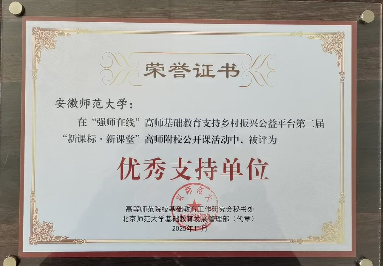 开幕式上,举行了“强师在线”高师基础教育支持乡村振兴公益平台第二届“新课标·新课堂”附校公开课颁奖仪式。教育集团合作学校的2名教师凭借对新课标的深刻理解和精湛的课堂实践能力获评“优秀课例”荣誉,安徽师范大学被评为“优秀支持单位”,充分彰显了“安徽师范大学附校”品牌过硬的教学质量与引领水平。