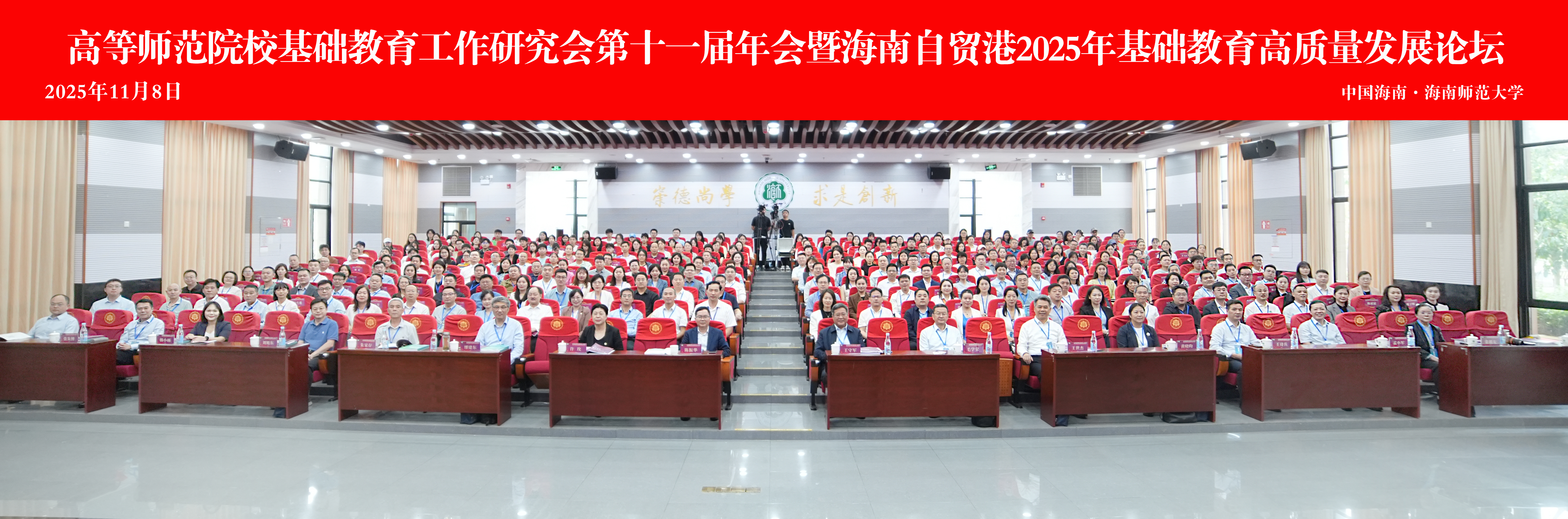 11月8日,高等师范院校基础教育合作办学工作研究会第十一届年会暨海南自贸港2025年基础教育高质量发展论坛在海南师范大学林洋校区举行。本次大会以“高师赋能·共育未来:打造区域基础教育协同创新共同体”为主题,全国40余所高等师范院校及附属教育机构的代表齐聚一堂,围绕基础教育高质量发展展开深入交流。我校原副校长、博士生导师朱家存教授应邀作了题为《义务教育阶段素质精良的教师队伍形象》的大会主旨报告。